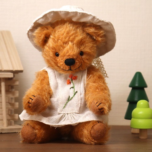 mona koyama ドレスに刺繍を施したレースのぼうしテディベア