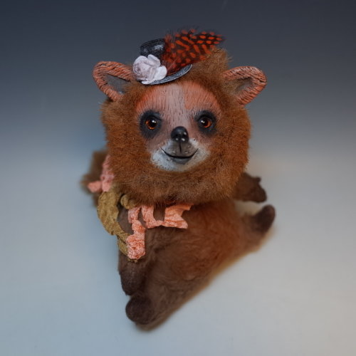 説明:ボディ・手足は一体化、首にはリボン、帽子には羽と薔薇の花つき