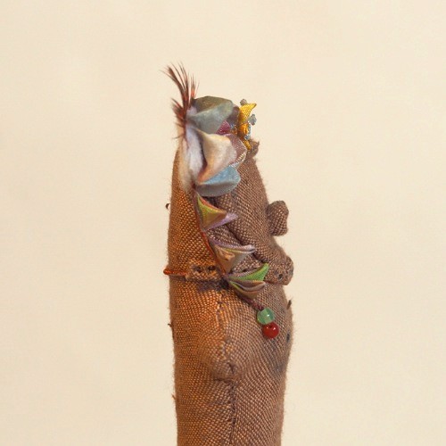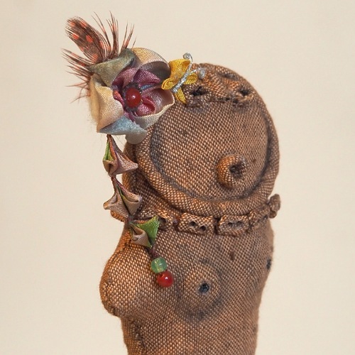 説明:今から一万三千年~二千三百年前、約一万年間も続いた縄文時代。平面の板状土偶は土偶の源。女性を型どったものが多いことから、安産祈願とも。今では幻の紬と言われる土佐紬。数年前、手持ちの貴重な土佐紬を有効利用しようと染めていて、偶然に染まった色に土偶を想い。江戸時代から伝わる摘まみ細工で着飾り、いま令和の守り神へ。※「つまみ細工士」取得、第一号記念作品。