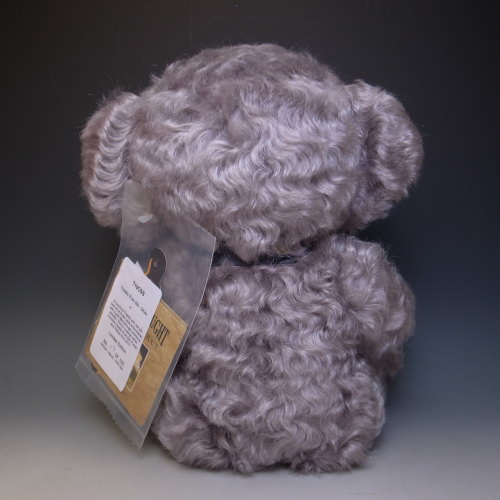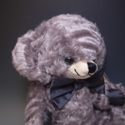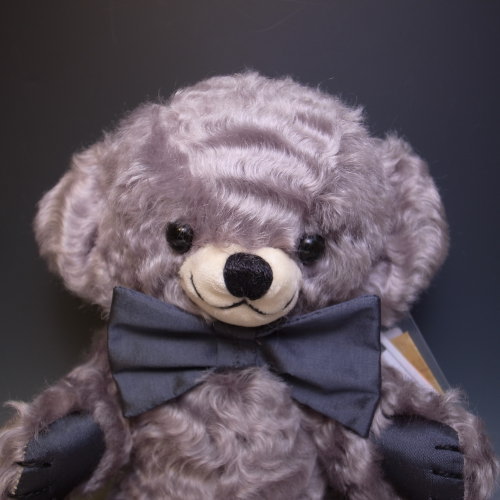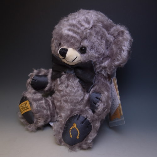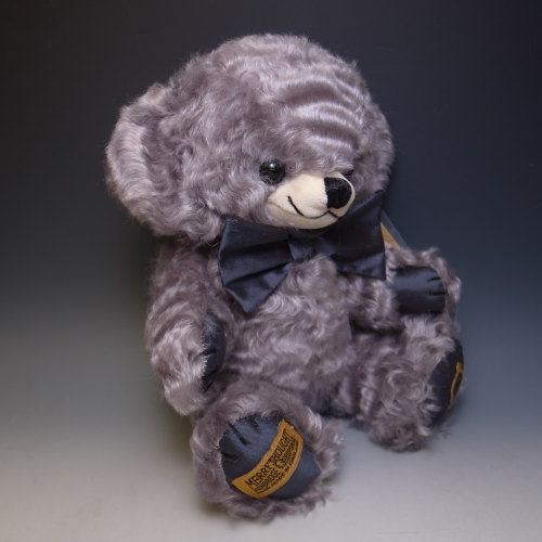シリアルナンバー、17番です♪カールしたシルバーカラーのモヘア製。蝶ネクタイと手足の裏はローシルクです。片足の裏にはゴールドの糸でメリーソート社のシンボルであるウィッシュボーンが刺繍されていますよ。
