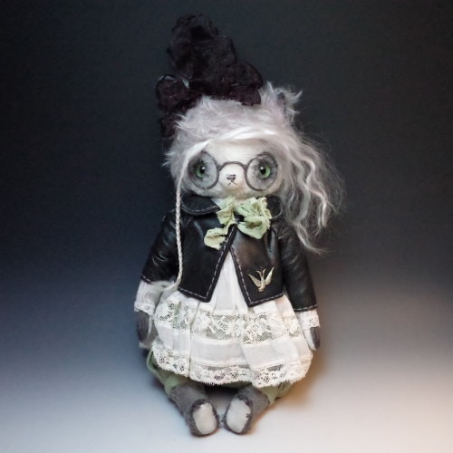 その他:アンティークワンピース・レース・皮ジャケット・布のパンツ・リボン・メガネ・ツバメブローチ