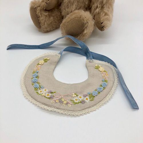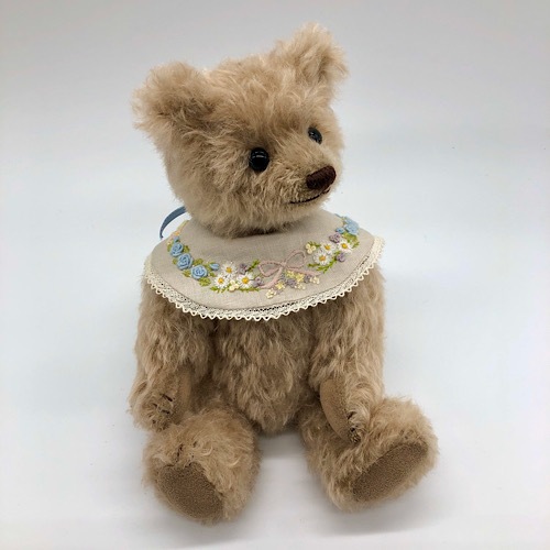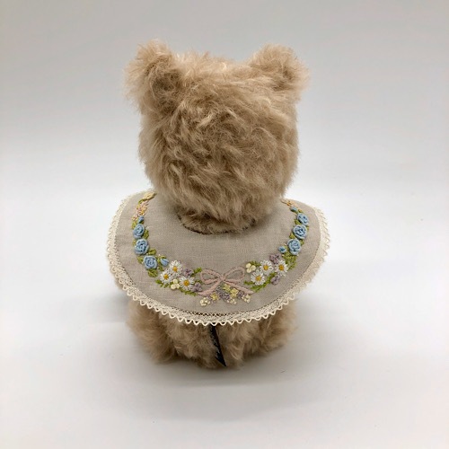 説明:お花の刺繍をたくさん入れたカラーをしています。カラーはお好みで前後変えていただいてもかわいいです。ずっと側にいてくれるベアです。