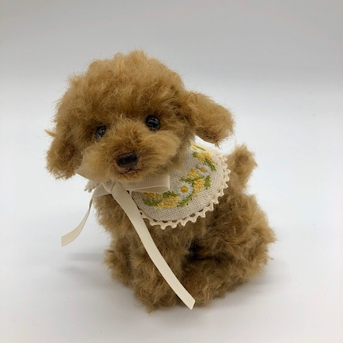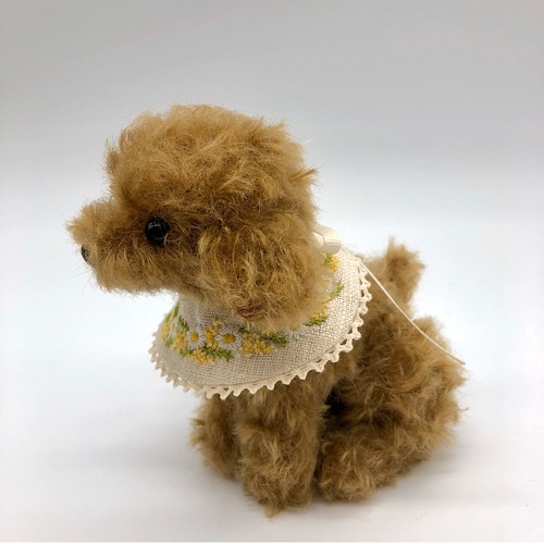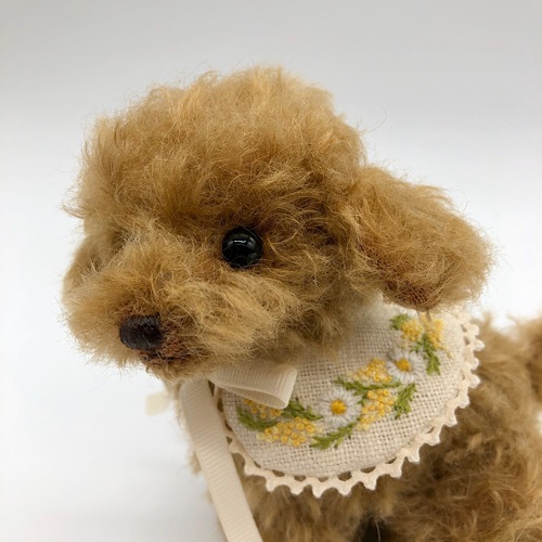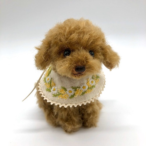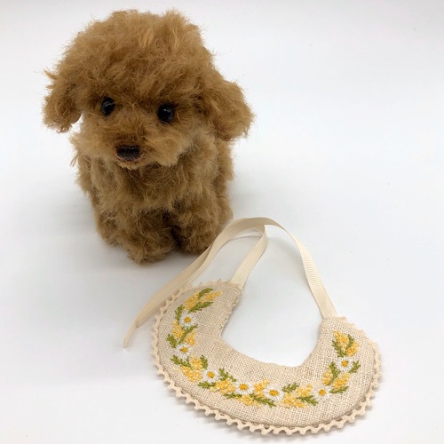 説明:マーガレットとミモザの刺繍をたっぷり入れたカラーをしています。トイプードルもお気に入りのようでニコニコ顔です。カラーはお好みで前後変えていただいても使用していただけます。