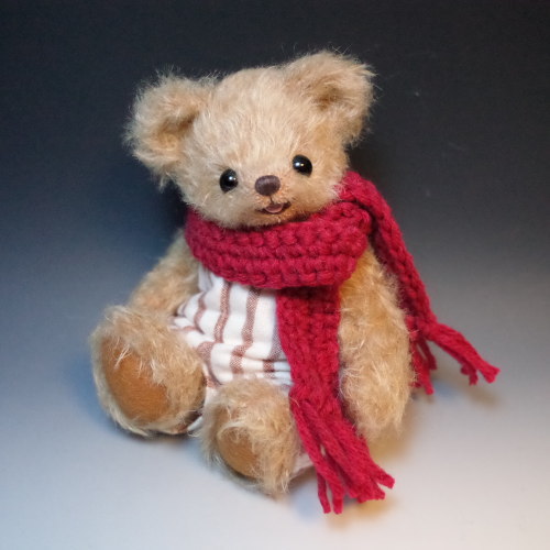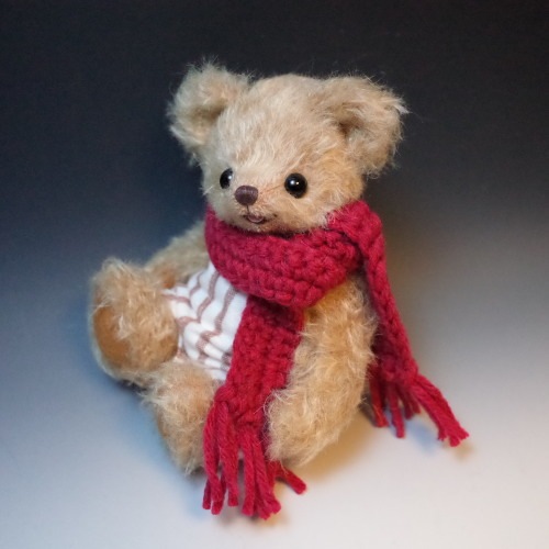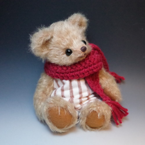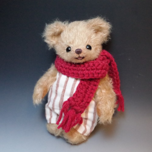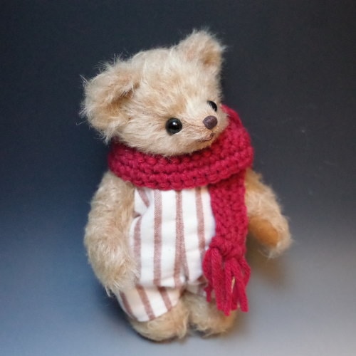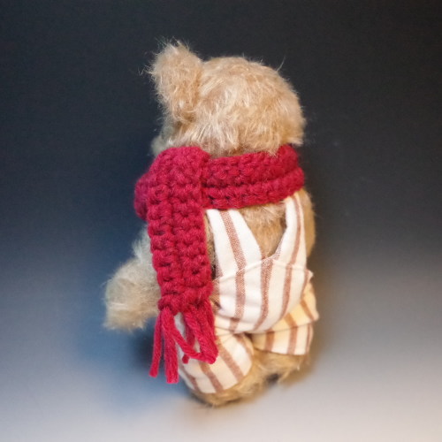 説明:起毛のオーバーオールと手編みのマフラーであたたか仕様の子です。※ 自立は致しません。
