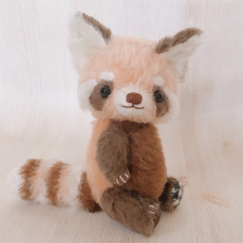 説明:ぽってりした雰囲気のレッサーパンダを目指しました。おなかは割としっかりめに詰めています。しっぽを使って直立もできます。普段使っている色よりワントーンずる明るくしたレッサーです。