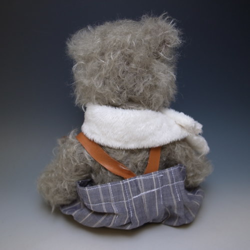 バルーンパンツの皮のつりベルトがお気に入りです。襟巻はスナップホックでとめてあります。