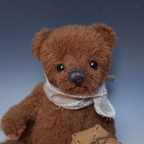 説明:茶色のアルパカでワイルドな仔です。お気に入りの革のキャスケットは小さくて被れないのでアクセサリーにしました。