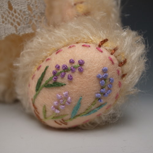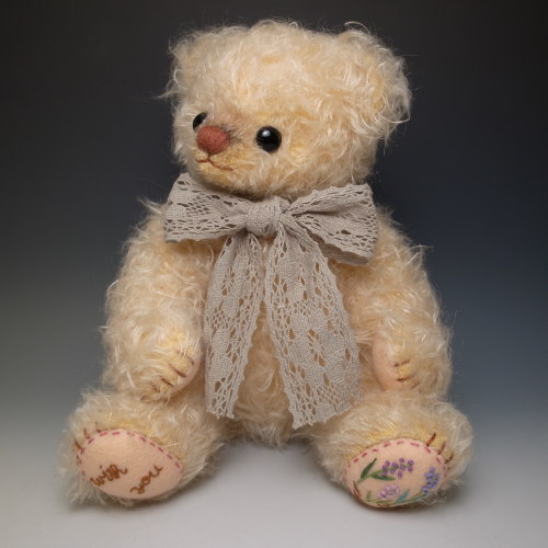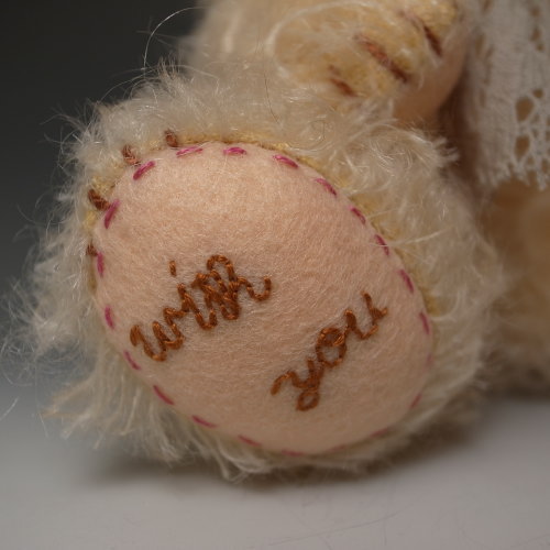 足裏になんとなく、なでしこっぽいピンクのお花とWith Youという文字を刺繍しました。
