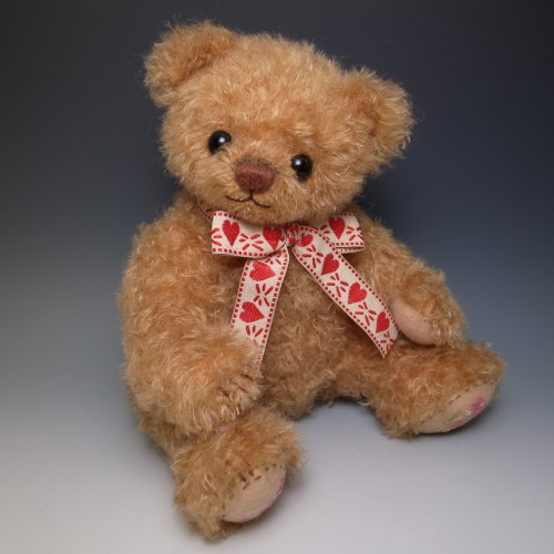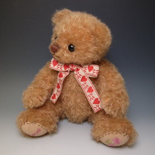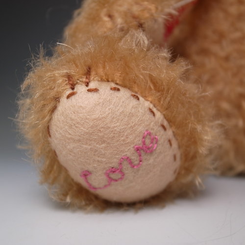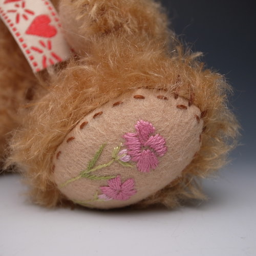 足うらにむらさき色のお花の刺繍とLoveという文字を 刺繍しました。