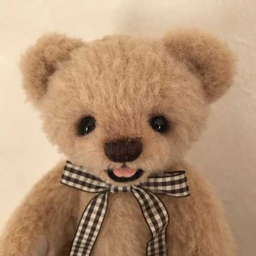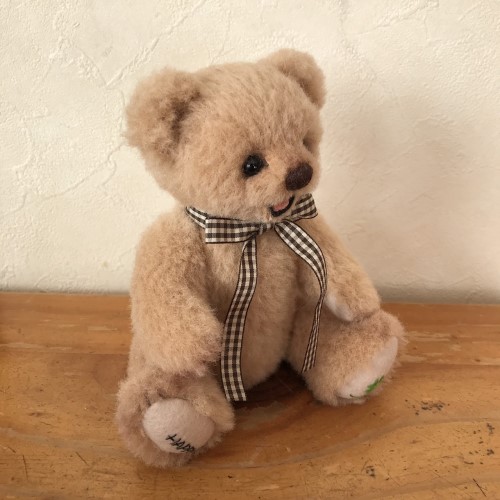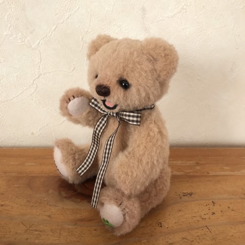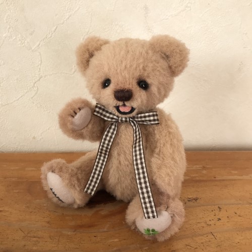 説明:もこもこウールでオープンマウスの子に仕上げました。通常の5ハードボードジョイントです。手足のフェルトにはいつものHappyと四葉刺繍です。シンプルなヌードベアなのでバッグにINさせてどこにでもご一緒することが簡単だと思います。ウールも毛の向きなど乱れにくいので適役かも。ぜひ、お供として!