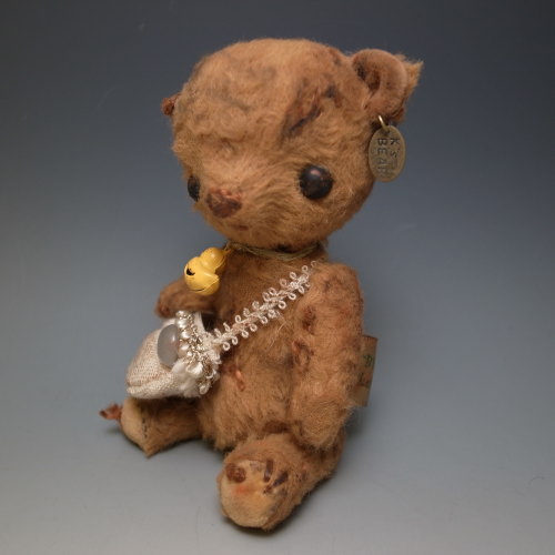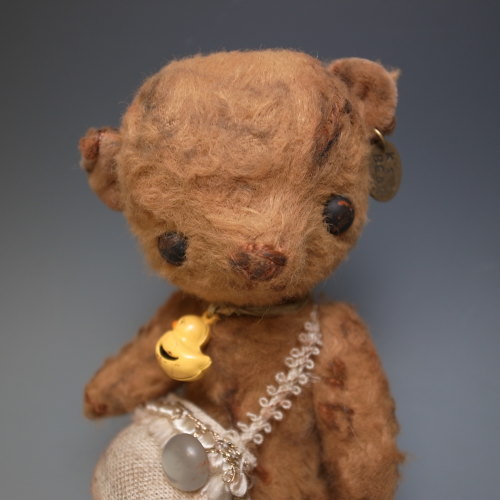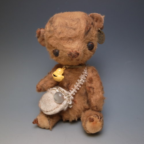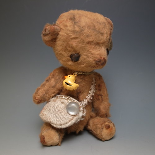 アンティーク風に加工してあります。何度も直して貰いながら大切にされてきたコ。手の平サイズなので、乗せてみて下さいね。ほっこり優しい気持ちになれるといいな♪ 一緒にお出掛けしてね。