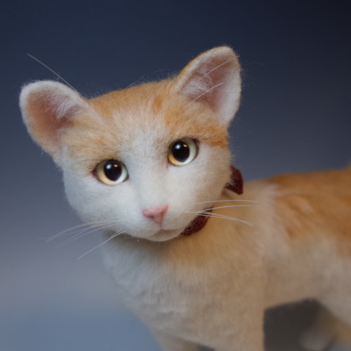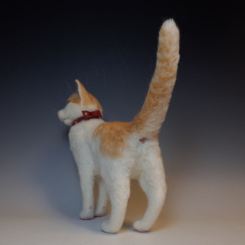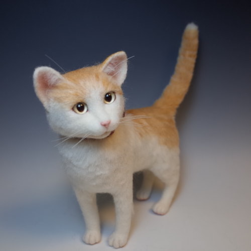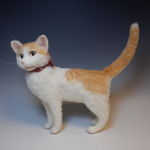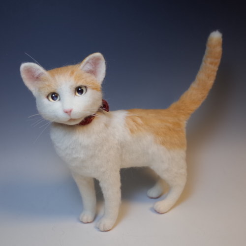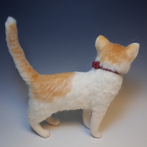 説明: 羊毛フェルト(ニードルフェルト)の技法で作り、全体にアルパカ毛を植毛して仕上げています。