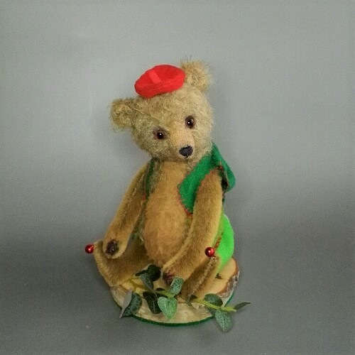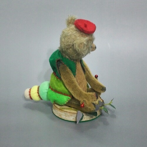 説明:エリック.カールさん著。物語「はらぺこあおむし」より。青虫ををテディベアで表現してみました。青虫衣装は脱げます。