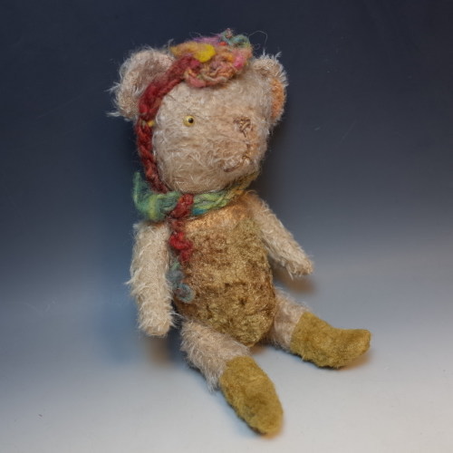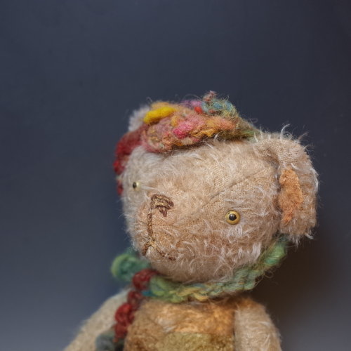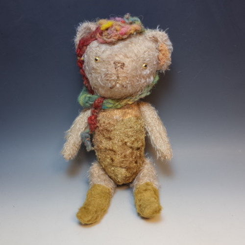 説明:素朴な表情のくまさん。 暖かい毛糸の帽子がお似合い。