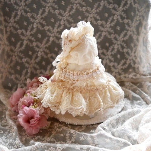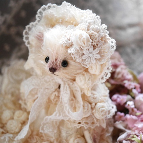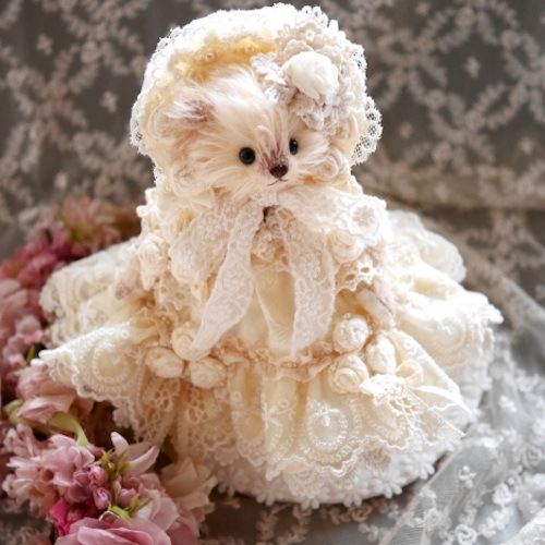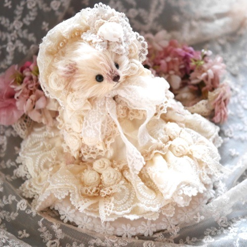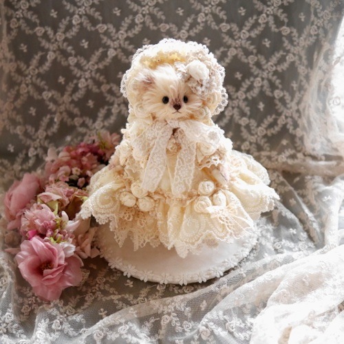 説明:レースをたっぷり使用したロマンティックな雰囲気のドレスべアです。