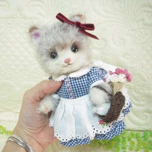 説明:ママのお手伝いが大好きなニャンコです。タッチは靴を履かせバランスを整えたら自立出来ます。尻尾・ワイヤーが入っています。お好きなポーズにして下さい。※頻繁に動かしたり、強くひっぱたりすると破損の恐れがありますので優しく扱って下さい=^_^=