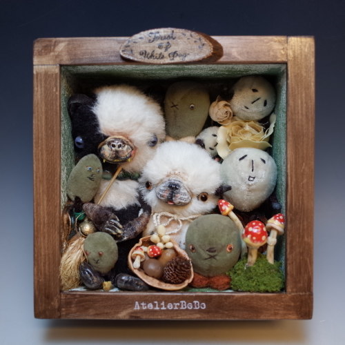 白パグの森には守り人で呪術師の無巍古(ブギコ)、神の使者であるこどもの白パグと彼を守る物の気たち、石っころの気、苔玉の気が棲んでいる。今日も人々に森の香と笑いを届けるための密談ちうwww