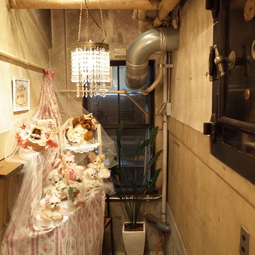 Mole Galleryは、昭和2年7月竣工の芝川ビルの地下1階にあり、歴史ある古いビルの雰囲気を残した、Mole & Hosoi Coffees併設の細長く洞穴の様なギャラリースペースです。旧金庫室だった独特の空気感を生かした飾り気のない空間、ここは飾るモノの本質が出る地階の展示場です。