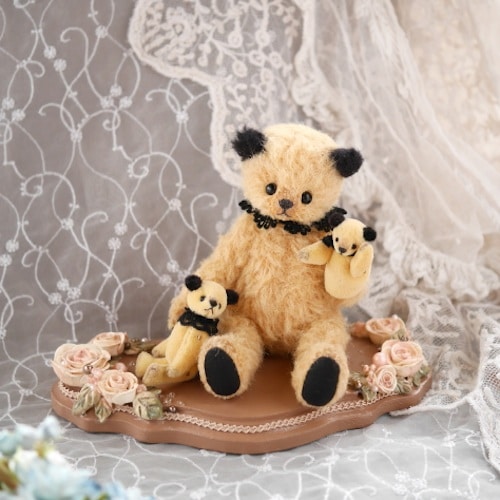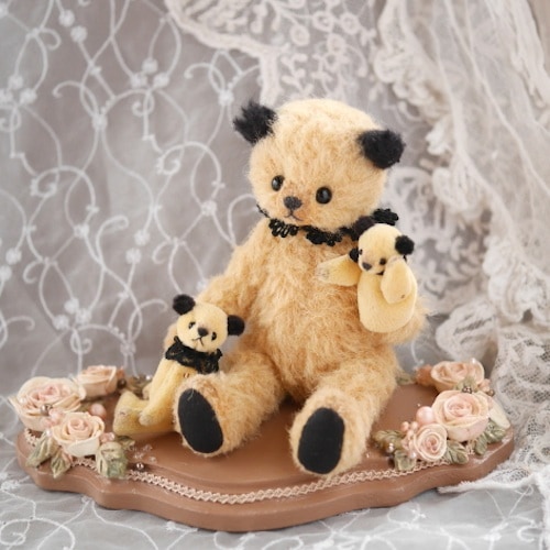 説明:スーティのパペットショウ、始まり始まり♪ 今日のお話しはなにかな?腕はワイヤー入りでポーズが変えられます。台座はアンティーク風の落ち着いた色合い。パペットは被せてあるだけですので取り外し可です。手も動かせます。ちびくまのネックもジョイント入り、手足はビーズジョイントで動きます。