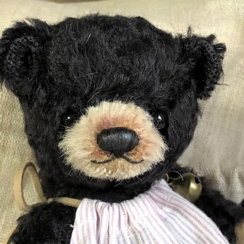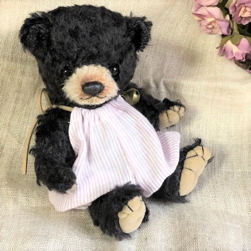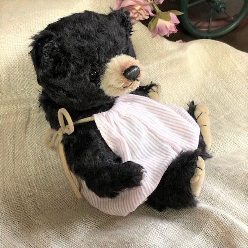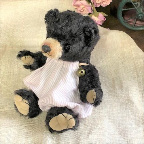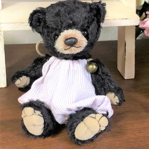 説明:森の子熊シリーズ、首はwジョイントでクラクラと 可愛いです。オーバーオールに鈴を付けてあげました。森の中でもすぐに見つかりそう♪