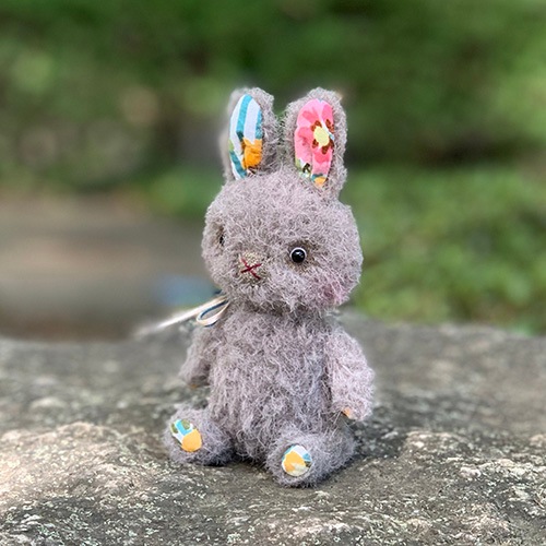 説明:いつも作っている、ぺたんこぬいぐるみと立体をミックスした子を作りました。目の周りとほっぺたに色を着けてあります。いつもよりさらにユルっとした感じの作品になりました。
