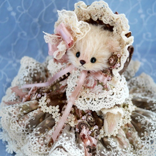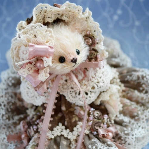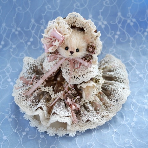 説明:レースをたっぷり使用したロマンティックな雰囲気のドレスべアです。