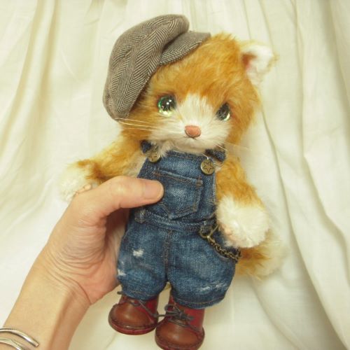 説明:ダメージジーンズを履いて後ろポッケにお財布を入れたチョット生意気なネコです。ジーンズはわざとダメージを付けているので穴や綻びがあります。気になる方はご遠慮下さい。