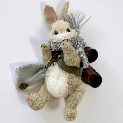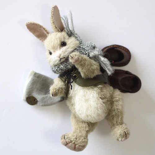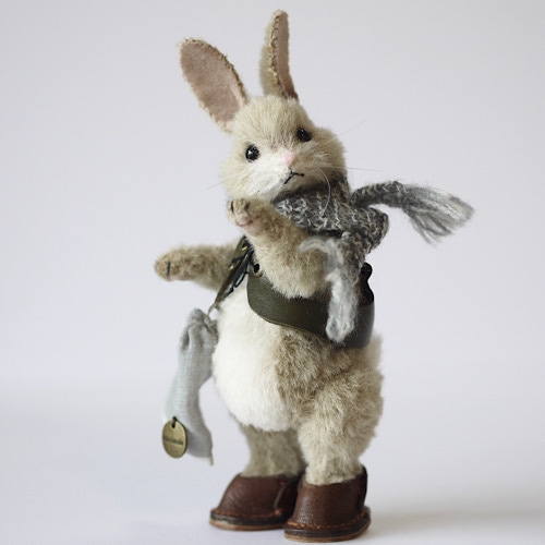 説明:外国の絵本から飛び出してきたようなリアルタイプのウサギさんです。革靴を履かせると立ち姿で飾る事も出来ます。衣装もこの子の雰囲気に合うように丁寧に作製致しました。サイズ以上に存在感のある子です。お部屋の可愛い住人として如何ですか?*自立させる際は転倒防止に充分ご注意下さい。*同型紙、同素材の作品を作製、販売する場合がございます。返品不可。
