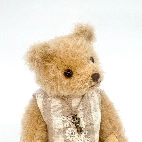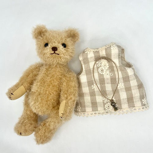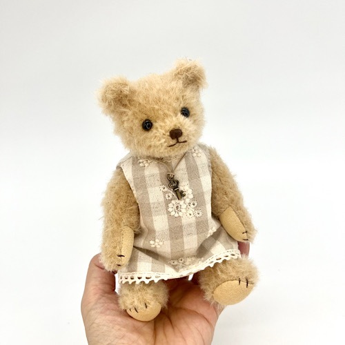 説明:ナチュラルなワンピースを着たテディベアです。