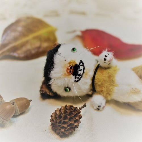 説明:幸運の鼻下ほくろを持つ小さな三毛猫さんです。