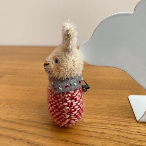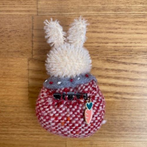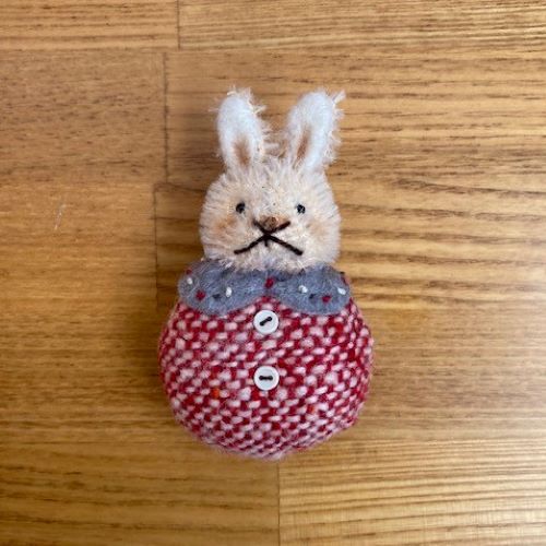 説明:うさぎさんのマンマルブローチ お出かけの時、連れていってね。