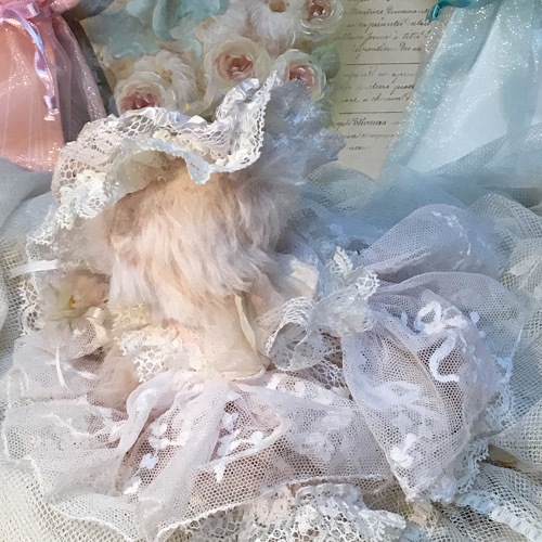 アンティークのダブルチュールで、クリスマスのおめかしをしました。