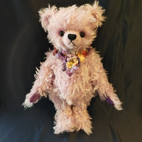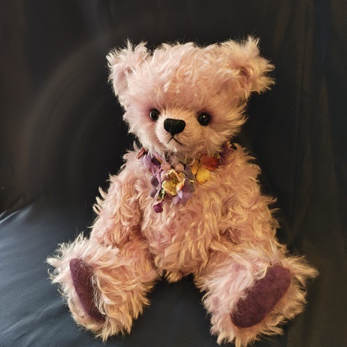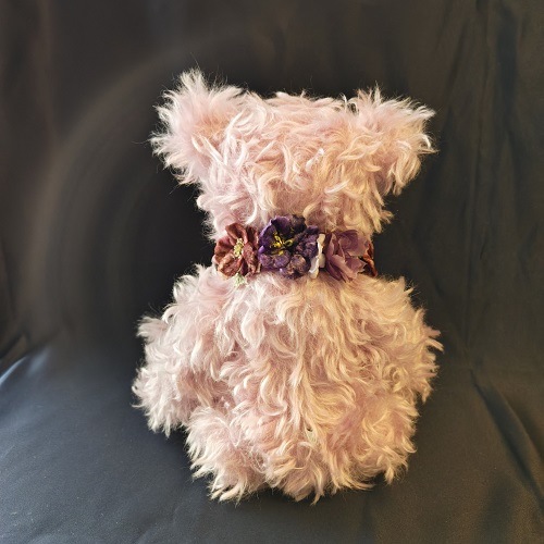 チョーカーには モヘアに合わせた色合いの布花を組みました。