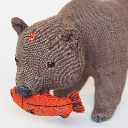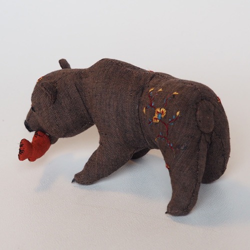 説明:テディベアも木彫りの熊もドイツから伝来 そんな木彫りの熊を土佐紬で表現しました いつまでも豊かな森でクマが生きてゆけますように