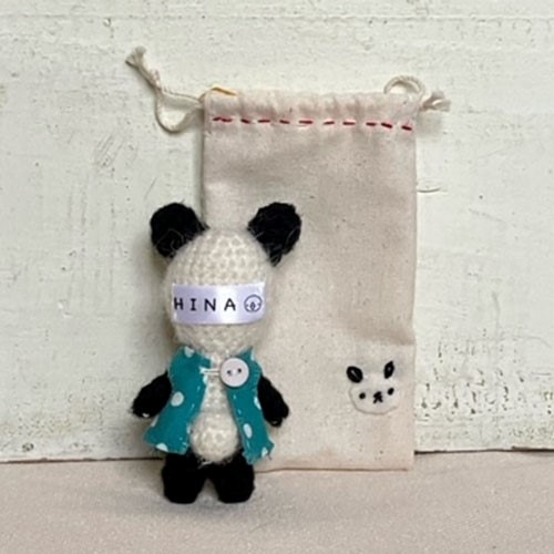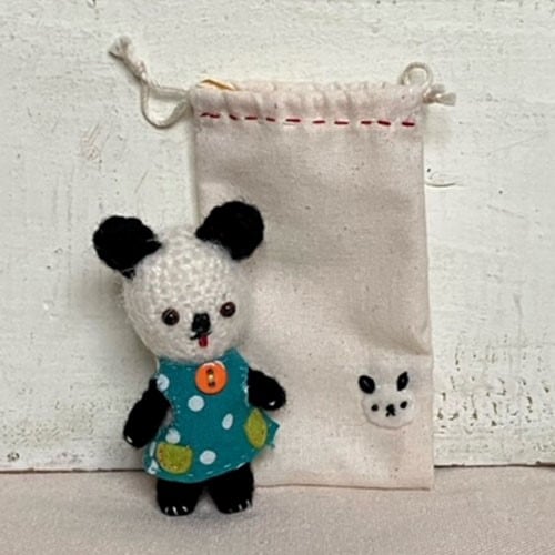 説明:手のひらサイズのパンダカラーの小さなベア。