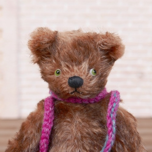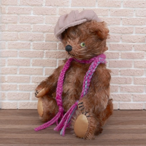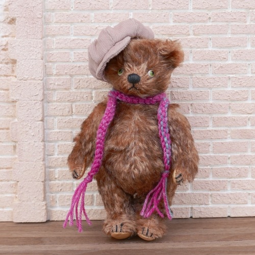 説明:ピンクのキャスケットとマフラーでおめかししたベアです。