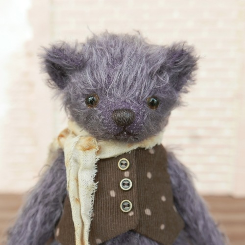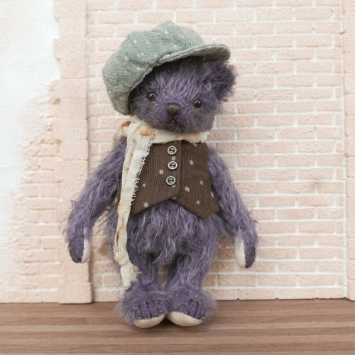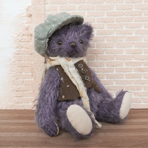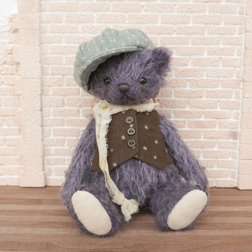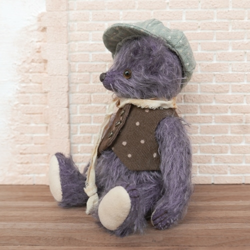 説明:キャスケットとベストとスカーフ(着脱可能)でおめかしした男の子のベアです。